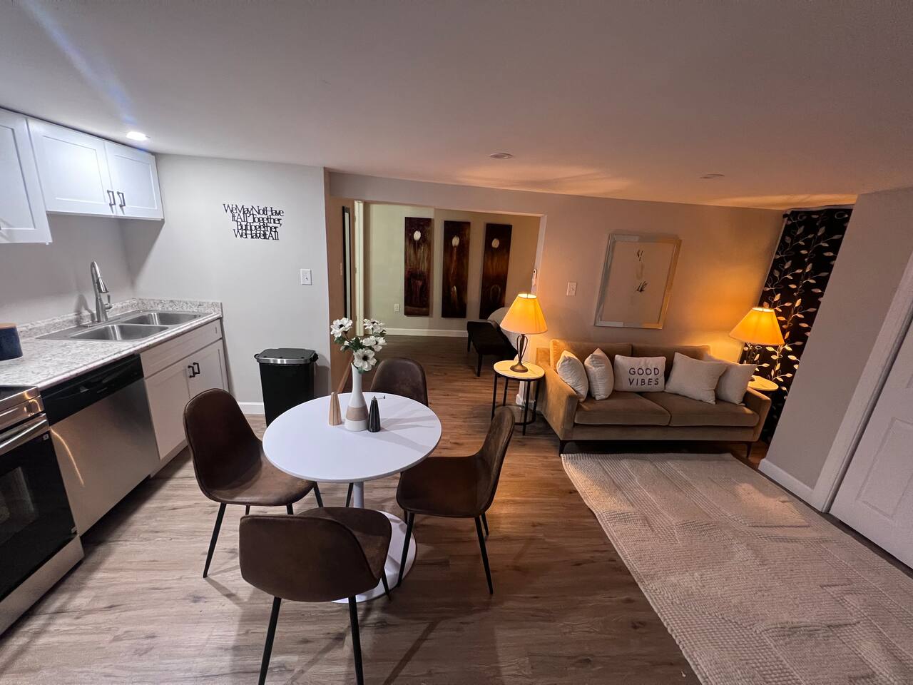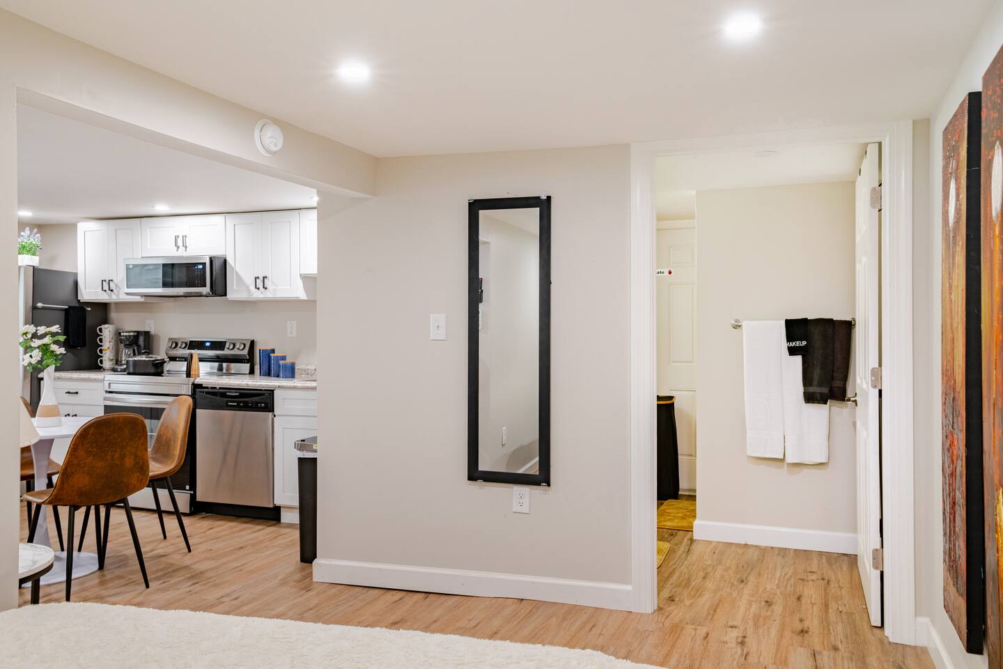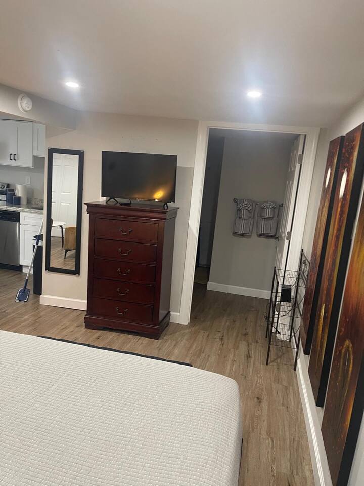 Guests have full access to the entire unit during their stay. You’ll receive simple self-check-in instructions and a unique door code before arrival for a smooth, contactless entry. Full kitchen washer dryer adjacent on the same level. private entrance private full bath, perfect for single travelers or couples