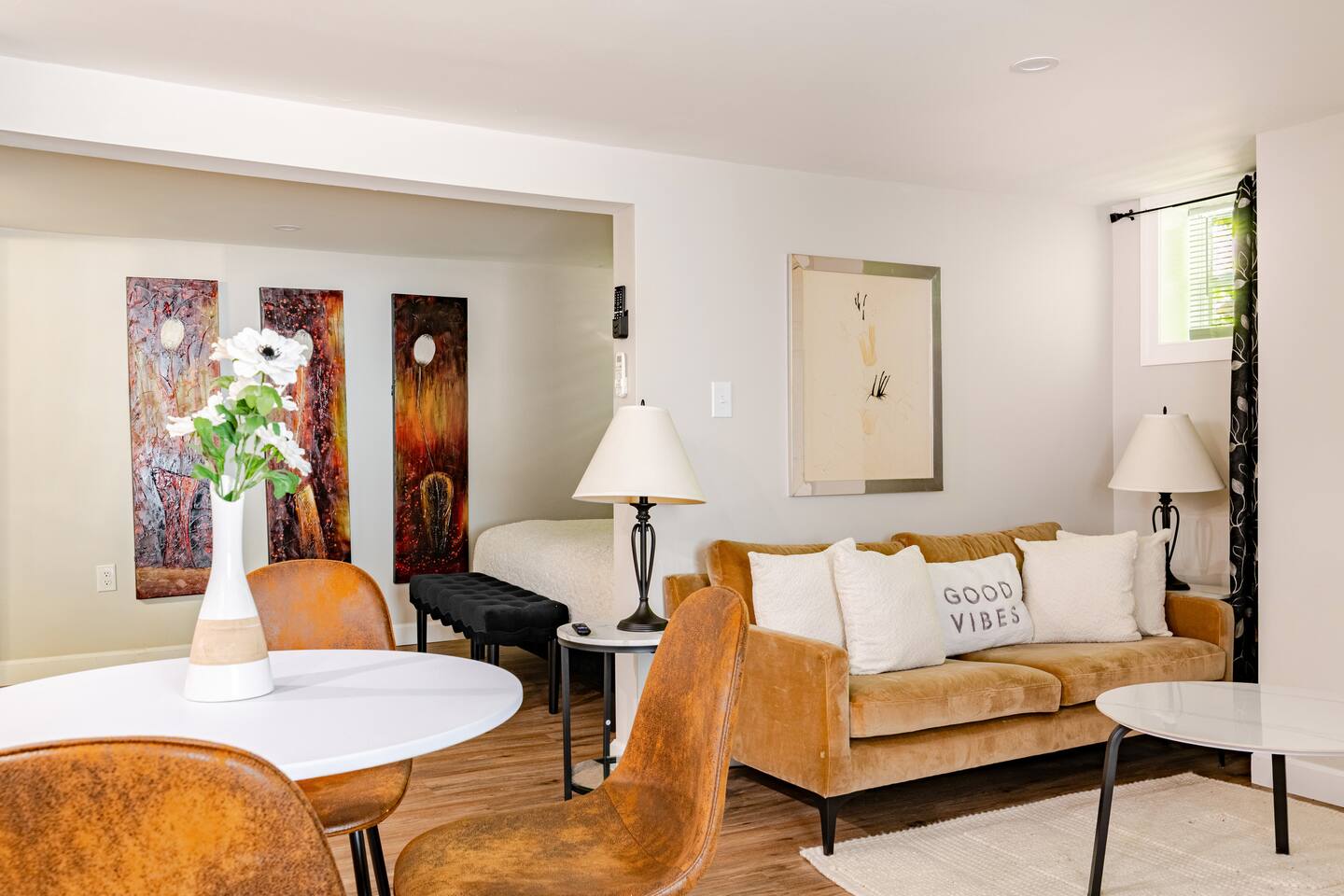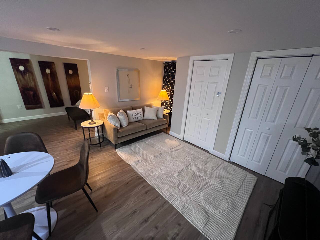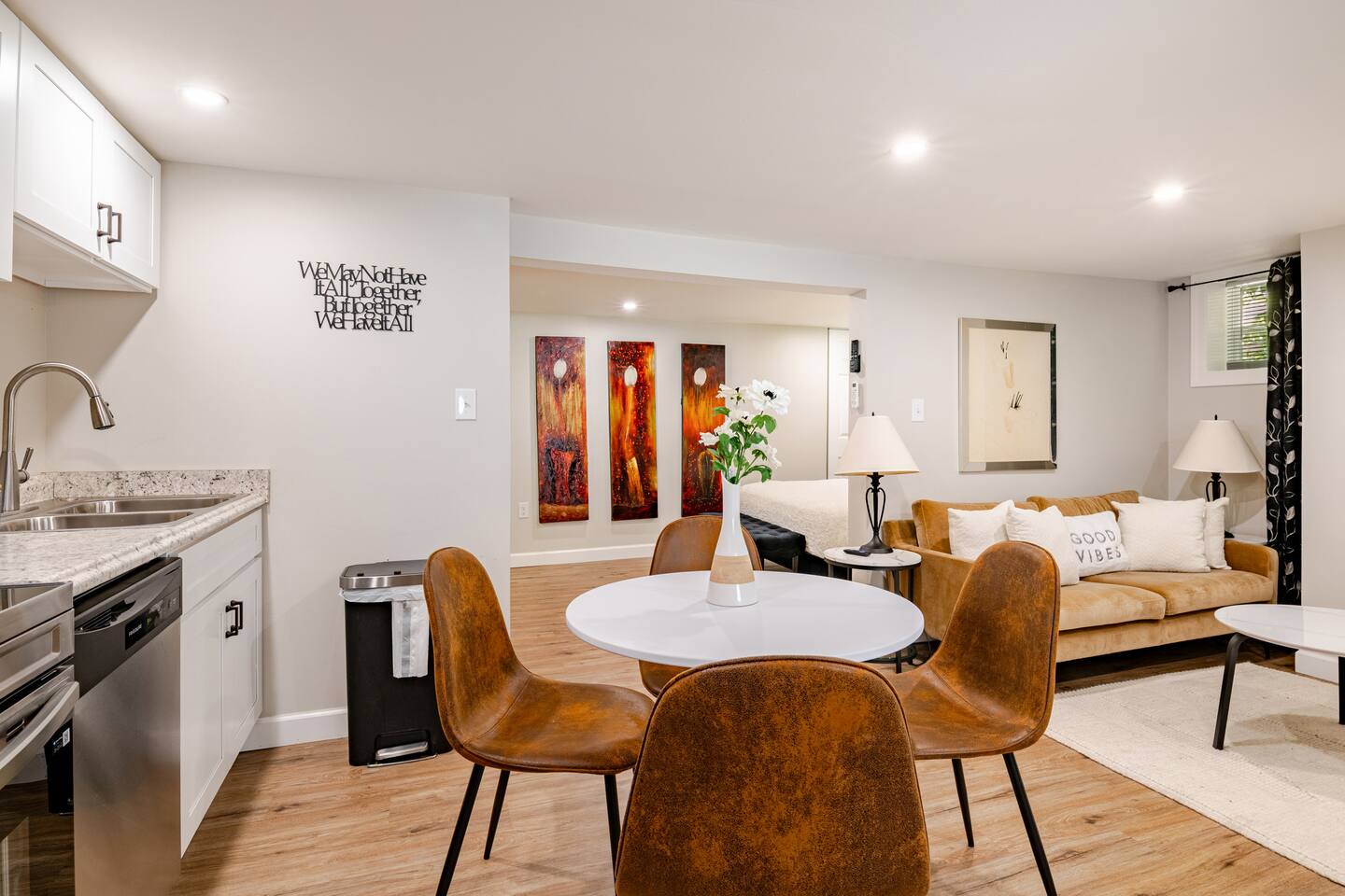 Guests have full access to the entire unit during their stay. You’ll receive simple self-check-in instructions and a unique door code before arrival for a smooth, contactless entry. Full kitchen washer dryer adjacent on the same level. private entrance private full bath, perfect for single travelers or couples