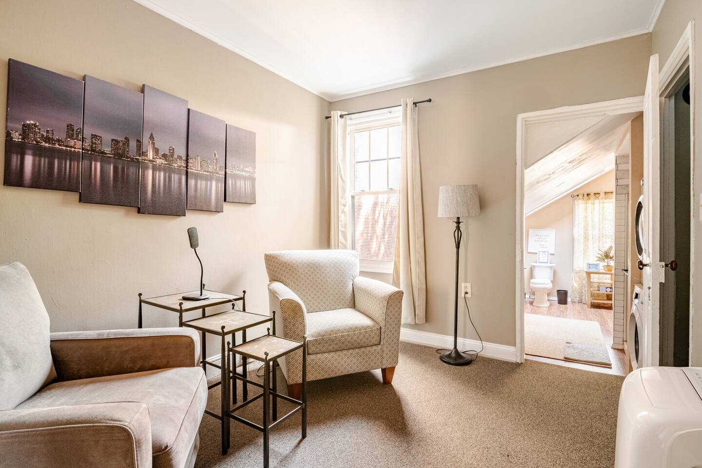 Welcome to our charming rustic Midtown home , a perfect blend of comfort and convenience in the heart of Harrisburg. This stylish and spacious home is ideal for solo travelers, couples, and business visitors looking for a home away from home •kitchen with appliances • High-speed Wi-Fi and smart TV with streaming services • Cozy living area with comfortable seating • In-unit washer and dryer • and air conditioning • Complimentary coffee station • Fresh linens and towels provided